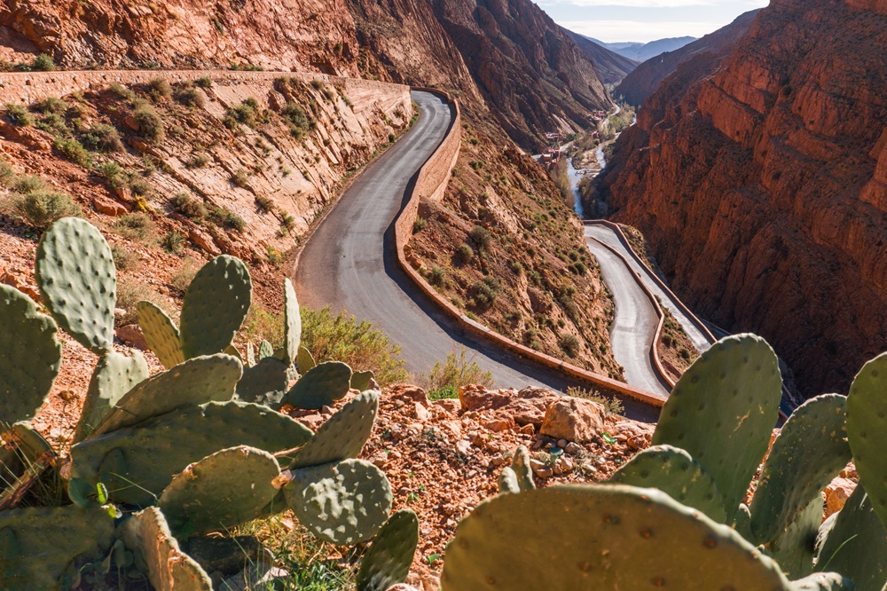 We depart Merzouga in the direction of the town of Rissani, the capital of the Alaouite Dynasty in Morocco. We will continue on in the direction of Erfoud, rich in black stone and fossils. Here you will have the option to stop at a stone shop. We will pass through Telouet, visit the impressive Todra Gorge, and arrive in Dades Valley in the evening. Dinner and overnight at the hotel.